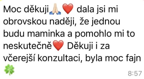 REFERENCE NĚKTERÝCH KLIENTEK, KTERÉ JSEM PROVÁZELA ZKLIDNĚNÍM MYSLI PŘI SNAZE O MIMINKO
