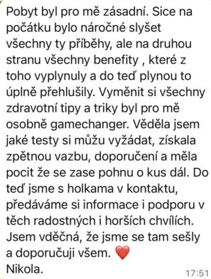 - společný online ženský kruh měsíc po pobytu pro reflexi změn a dotazy