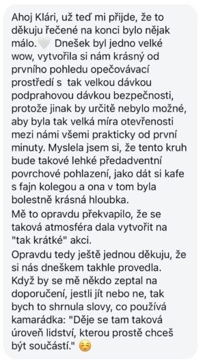 12:00 prohloubení sdílení a mé koučovací vhledy do vašich zkušeností